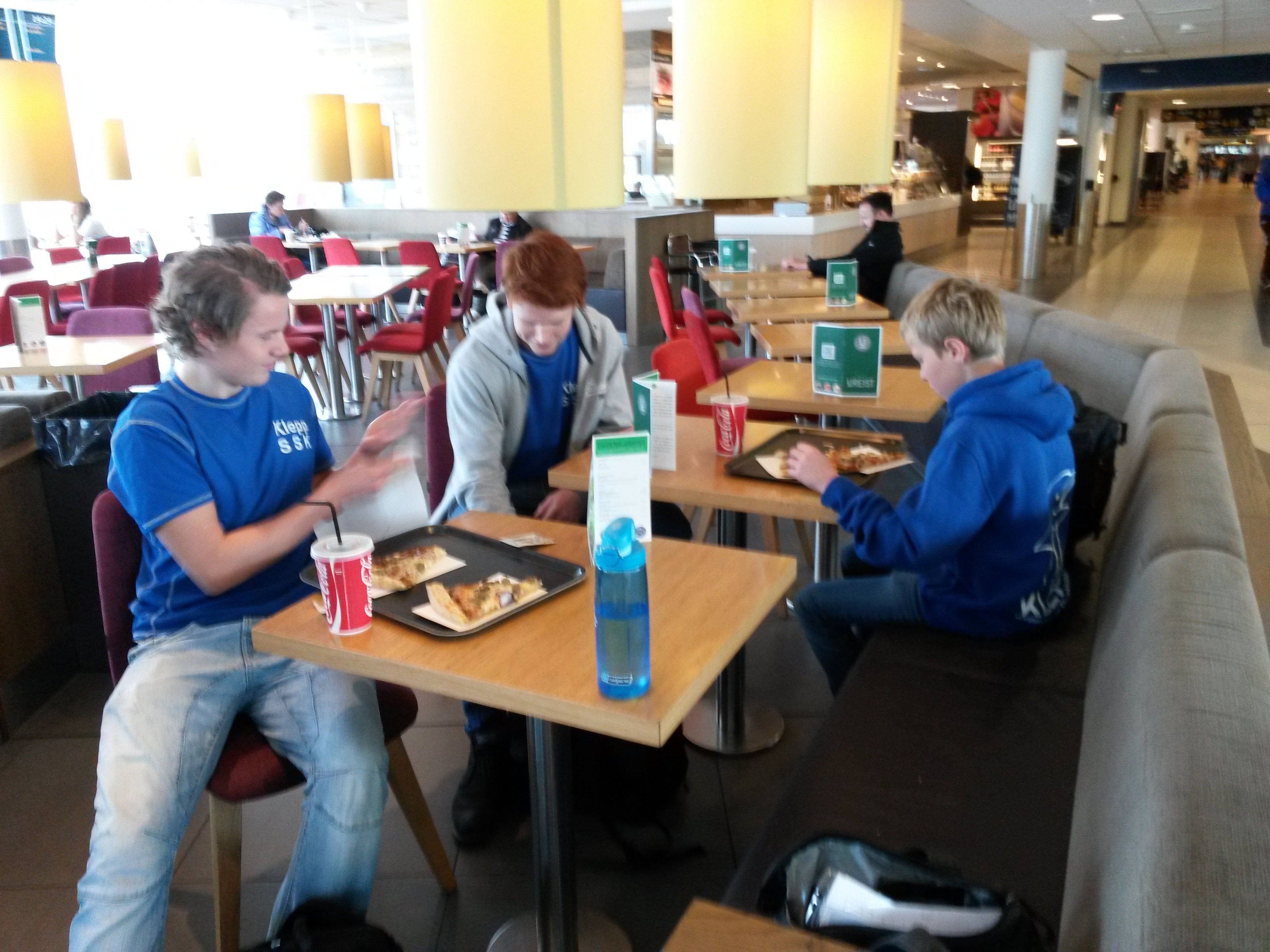 Klokken 07.00 ble frokost servert. Mange ble lange i maske da de så at det kun var en toastskive med syltetøy, juice og varm melk. Da var det godt at ” Steinars Take Away ” sto parat rett etter trening.