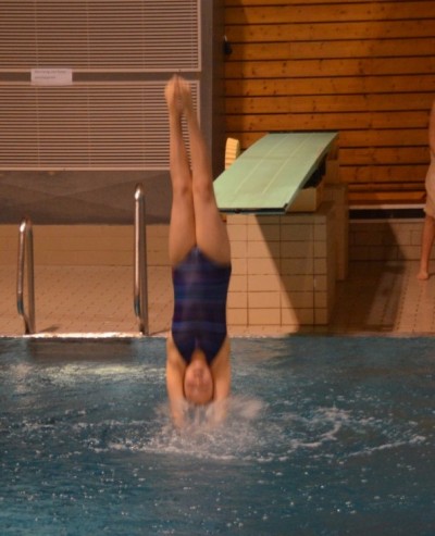 I klasse B (14-15 år) hvor Alva deltok var det et høyt nivå med godt etablerte stupere. Hun gjorde en god serie på åtte stup fra 1-meteren of fikk med det en fin 5. plass marginene var små mellom stuperne på 3.-5. plass. Alva stupte så bra at hun har NM-kravet inne på 1-meter.
