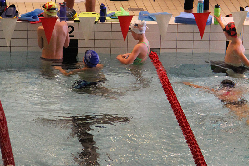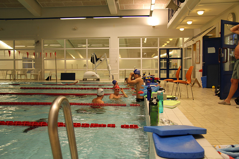 Etter at alle hadde fått blåst opp madrassene og rigga seg til, var det klart for fyrste symjeøkt. Symjinga fredag var mellom 2000 – 2200 og dei aller fleste av Klepp sine symjarar symde opptil 7000 meter!!