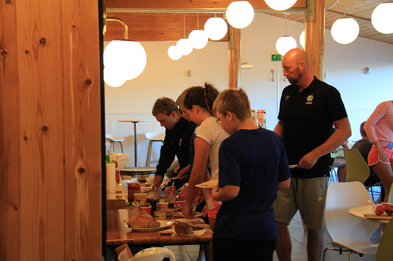 Frukost til «vanleg» tid, før det var ei siste økt i bassenget. Målet for økta var nye 7000 meter.